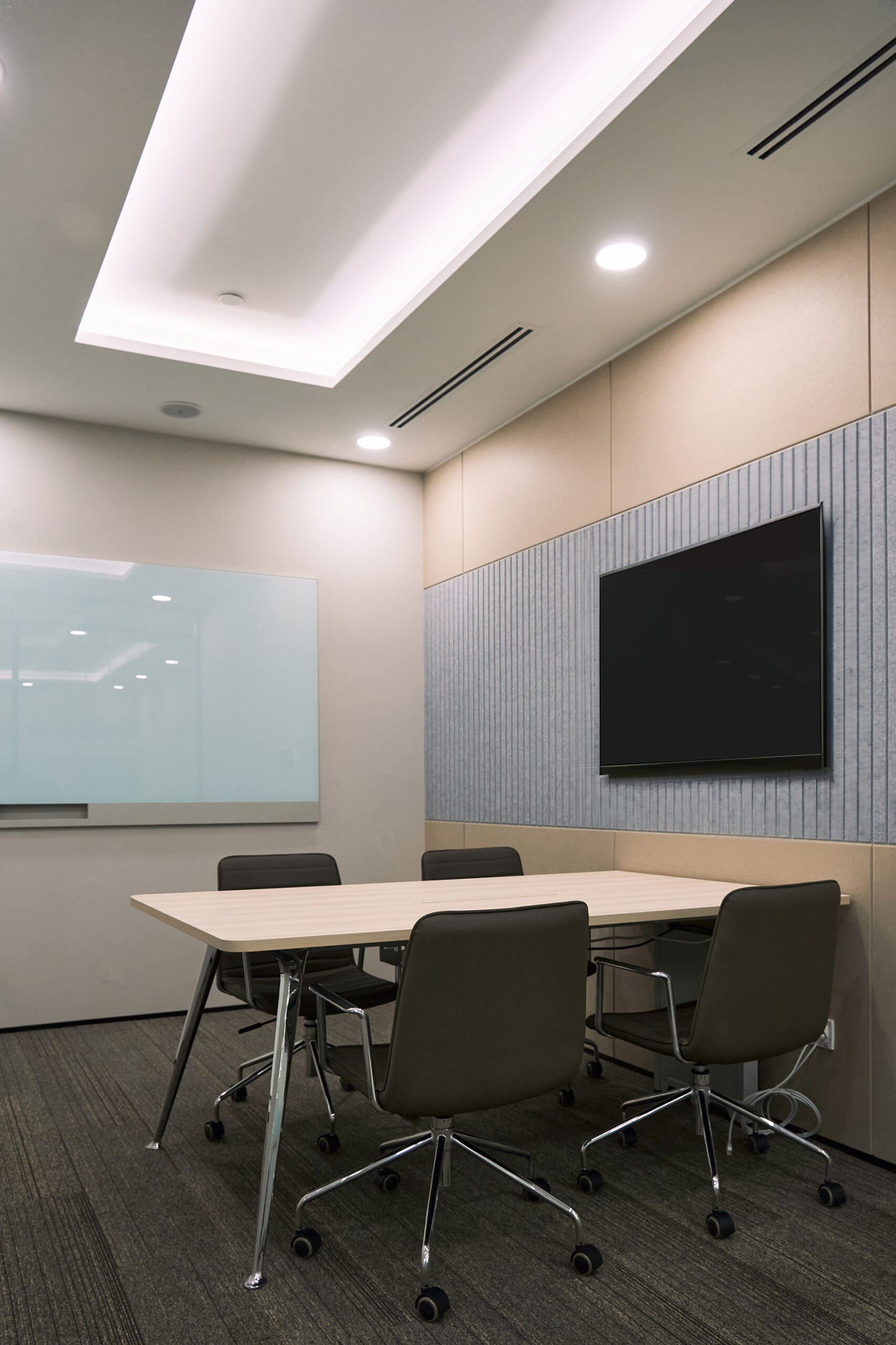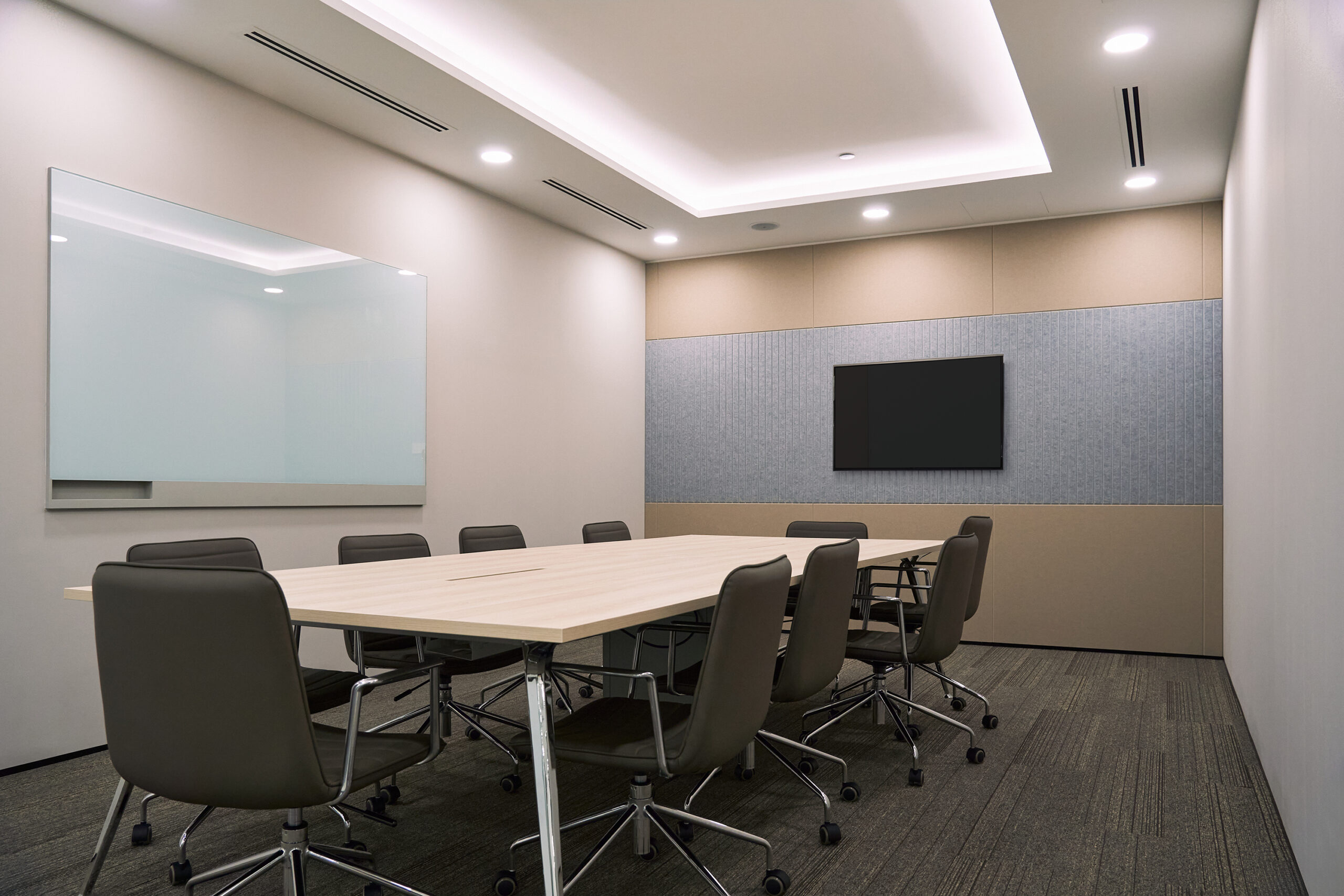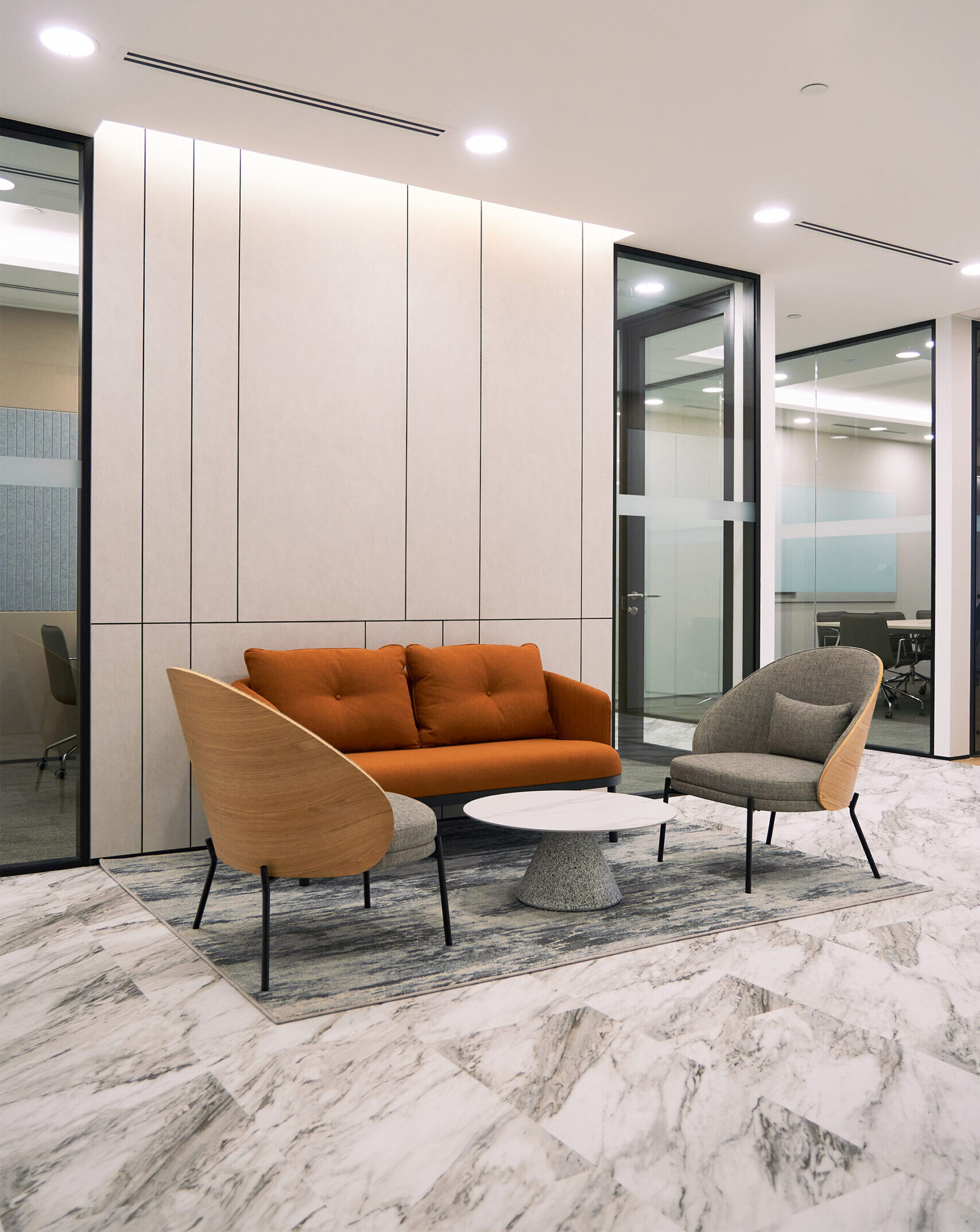 Two versatile meeting rooms — one large and one small — are positioned near the reception to ensure easy access for guests, without disrupting the flow of the back office. Every detail is considered to enhance daily functionality while maintaining a clean, timeless look.