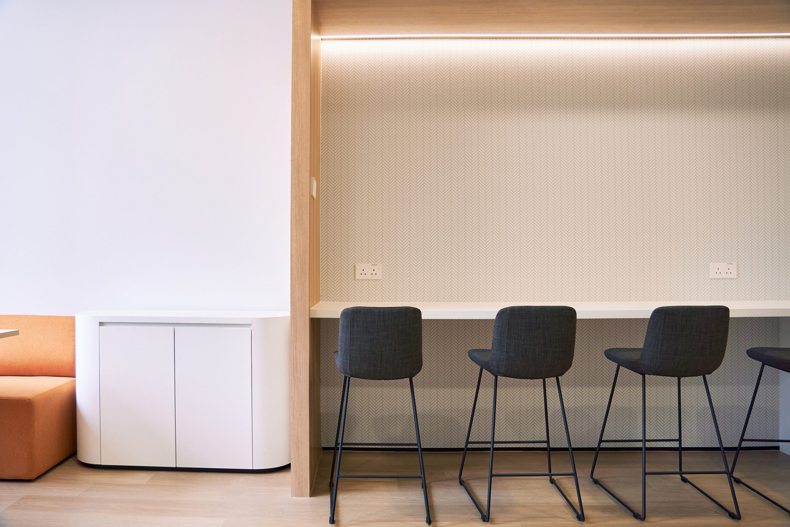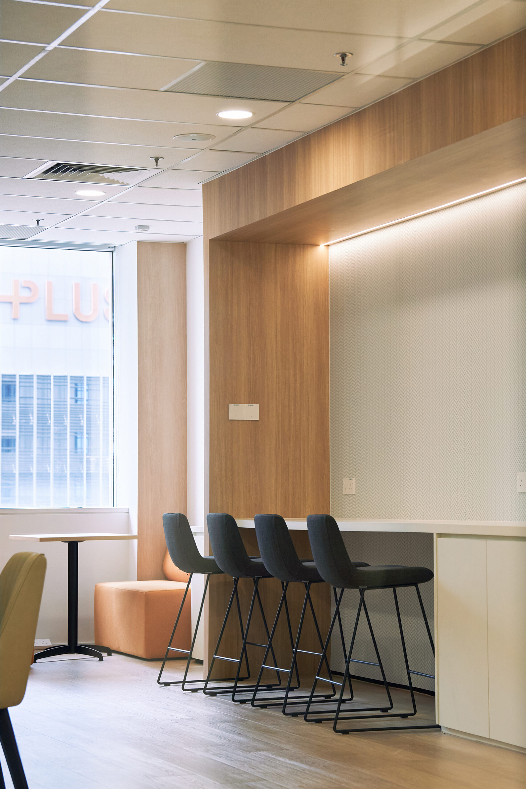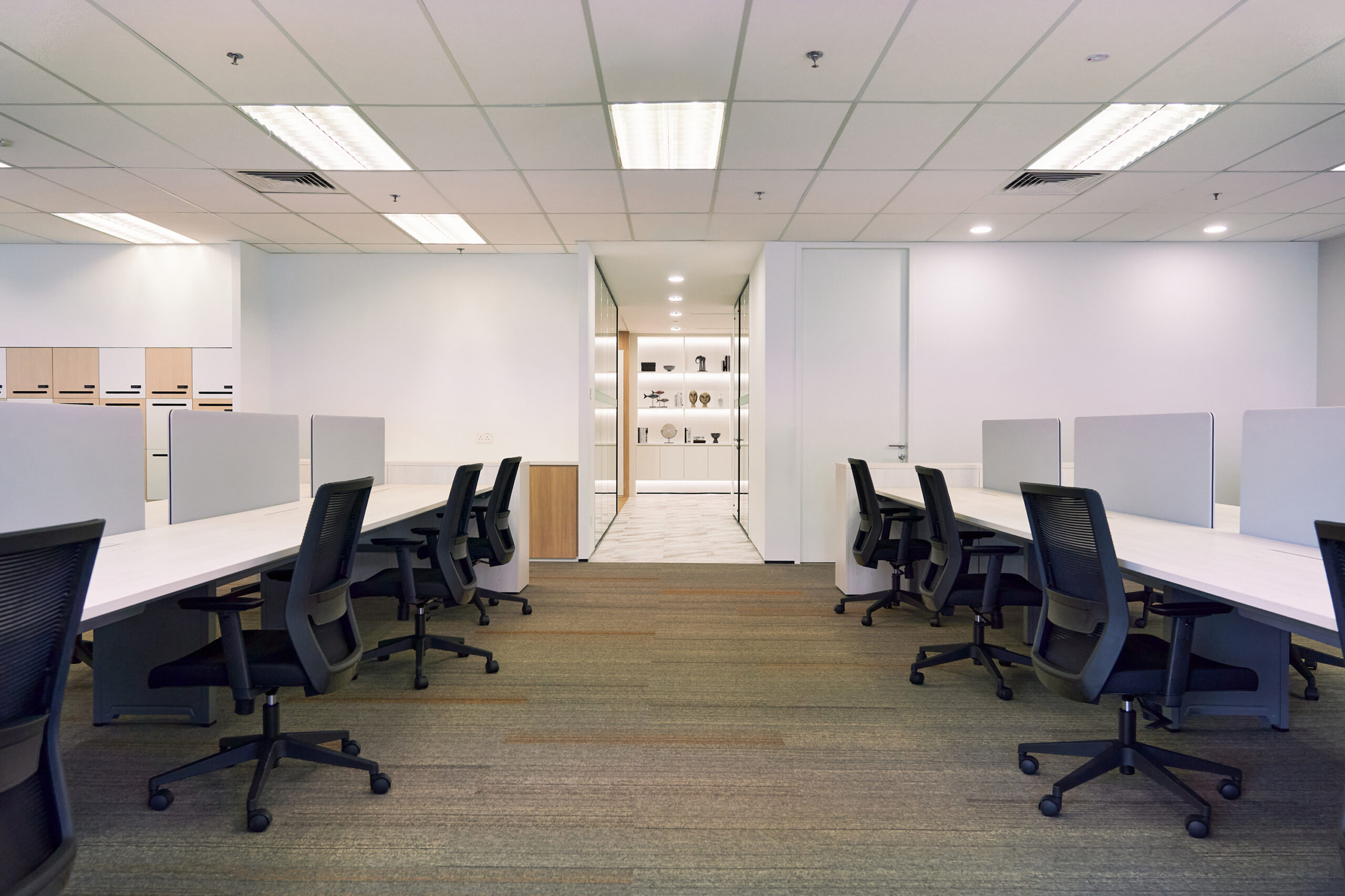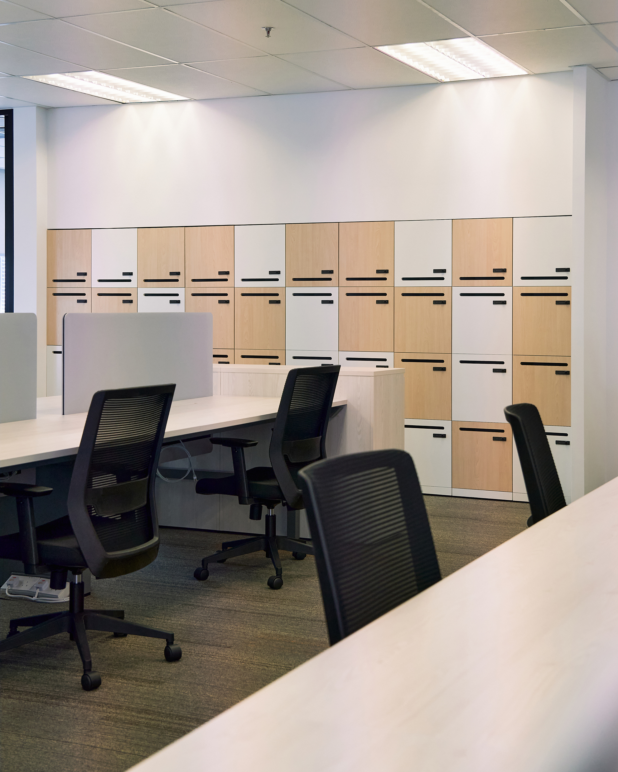 At the heart of the office is a welcoming front-of-house that seamlessly integrates a stylish pantry and informal collaboration area — perfect for casual meetings or a morning coffee catch-up. The workspace also includes dedicated personal storage, supporting a non-assigned seating concept ideal for agile teams and flexible work arrangements.